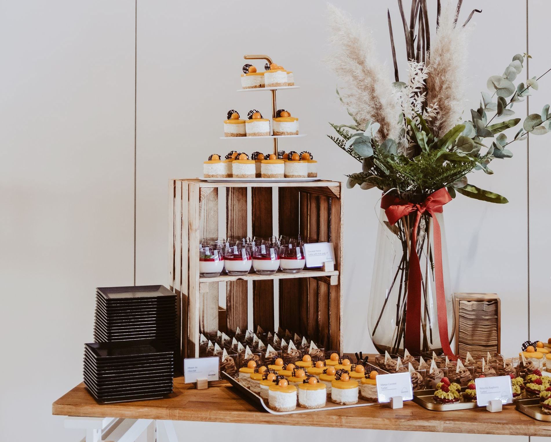 Der Klassiker und sehr beliebt bei unseren Gästen ist auf jeden Fall das Dessert im Glas. Hier empfehlen wir je nach Größe der Veranstaltung ca. 3 verschiedene Varianten. Sollten Veganer unter den Gästen sein auch darauf zu achten das eine der Varianten Vegan ist. Ein Highlight auf jedem Desserbuffeet ist eine wunderschöne und frische Obstetagere - liebevoll dekoriert mit feinen Früchten findet jeder Gast was.