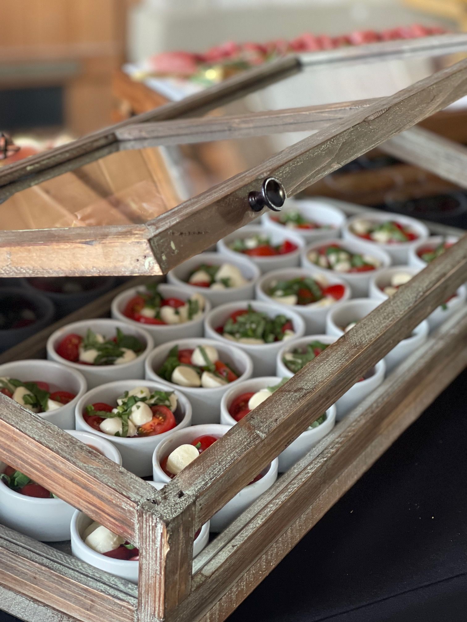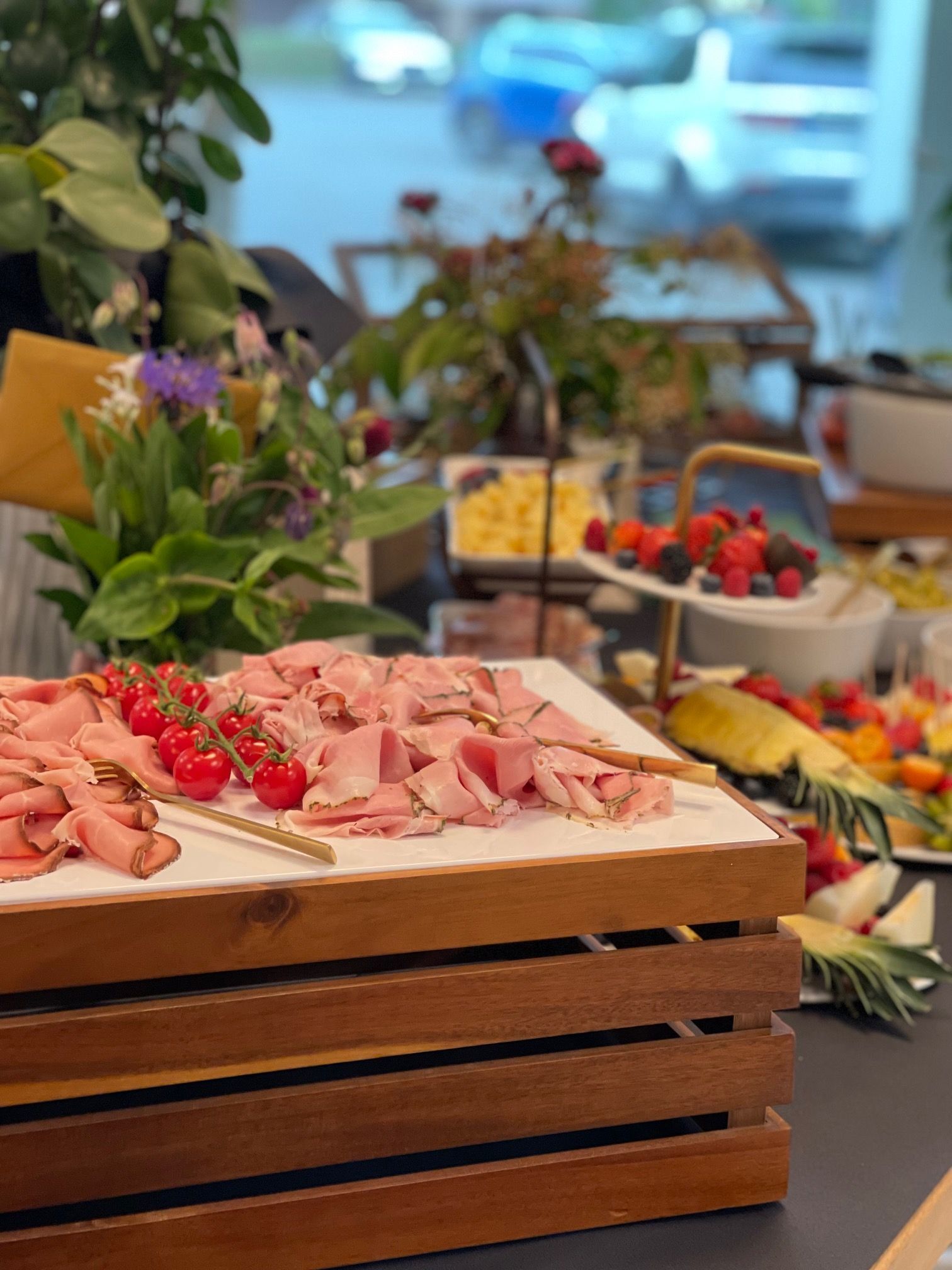 WAS IN DER LETZTEN ZEIT SEHR AN BELIEBTHEIT ZUGENOMMEN HAT IST EINE KOMBINATION AUS GRAZING TABLE UND FINGERFOOD oder mit LECKEREN frischen salaten.